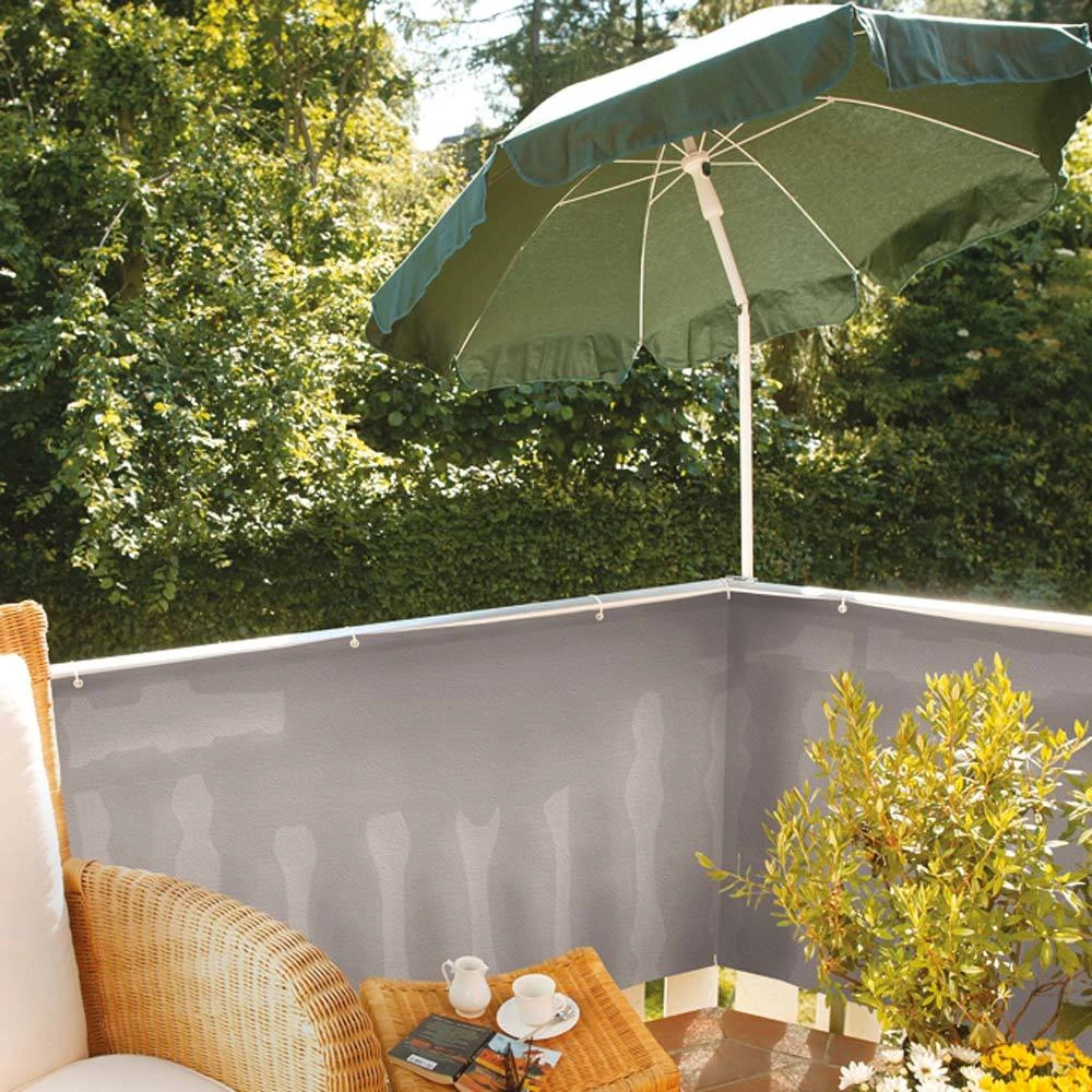 Diese Balkonbespannung ist ein echter Allrounder: Sie bietet Schutz vor Sonne, Wind sowie neugierigen Blicken. Zudem schafft sie ein gemĂŒtliches Ambiente und verschönert Ihren Balkon auf elegante Art und WeiĂe. Befestigt wird sie mit praktischen Haken an dem Balkongitter. Das Material ist sehr robust und hĂ€lt durch die ReiĂfestigkeit auch groĂen Belastungen stand. AuĂerdem ist die Balkonbespannung UV-stabil.