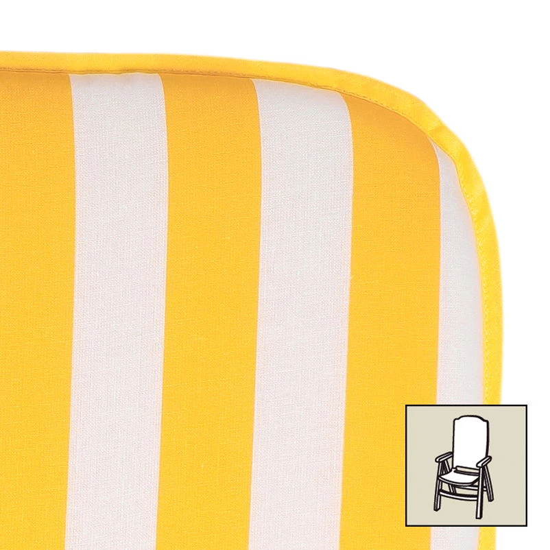 Der Bezugsstoff besteht aus einer strapazierfähigen Baumwolle, gefüllt mit einer Polsterung aus Schaumstoff-Kern und thermisch verfestigter Vliesumhüllung. Ein elastisches Band sorgt für optimalen Halt an der Rückenlehne.