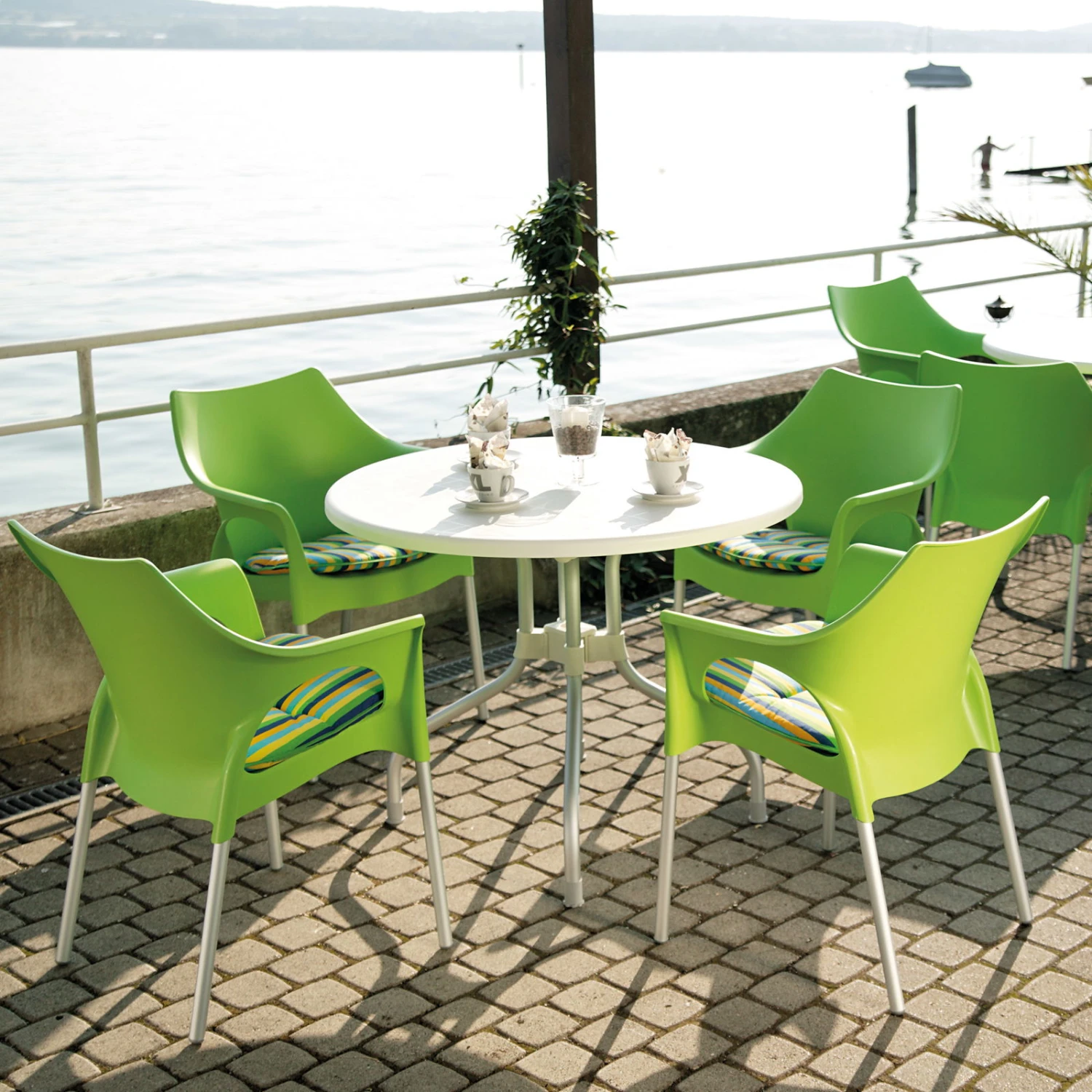 Abgerundet wird der einladende Stapelsessel Vegas durch die hervorragende Stabilität und Standfestigkeit sowie beste Witterungs- und UV-Beständigkeit. Platzsparend gestapelt, nehmen die einladenden Sitzmöbel kaum Platz in Anspruch.