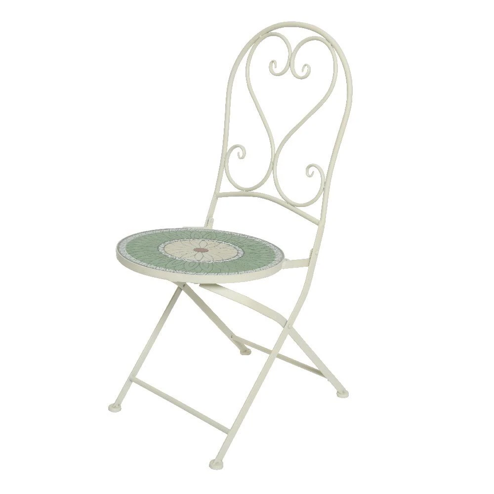 Dieser dekorative Klappstuhl überzeugt mit hohem Sitzkomfort und lässt mit einem Mal ein sonnig-mediterranes Ambiente auf Ihrer Terrasse, Ihrem Balkon oder zum Beispiel im Wintergarten entstehen. Der Bistro-Klappstuhl ‚Vigo‘ aus robustem Eisen ist aufwendig mit geschmackvollem Blumenmosaik dekoriert und ein besonderes Schmuckstück unter Ihren Sitzmöbeln.