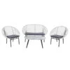 Mit dieser stilvollen Sitzgarnitur machen Sie sich je nach Wunsch drinnen oder drauĂen bequem. Das dreiteilige Bistro-Set ‚Butterfly‘ besticht durch eine dekorative, zeitgemĂ€Ăe Designidee und durchdachte Materialwahl. Das Kunstrattan harmoniert hervorragend mit der hochwertigen Glaskeramikplatte, die Sitzmöbel punkten durch den hohen Komfortfaktor.
