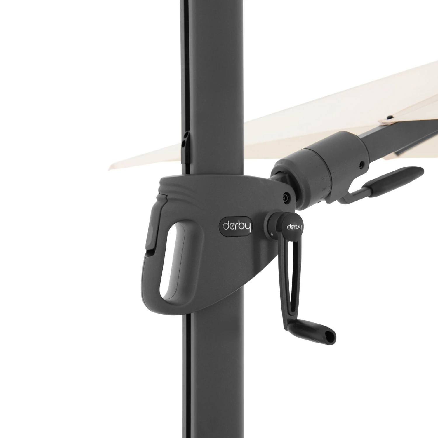 Der Pendelschirm ‚Derby DX‘ in der Farbe Natur lĂ€sst eine schattige Oase entstehen und mit minimalem Aufwand an den aktuellen Sonnenstand anpassen. Je nach Bedarf schwenken, kippen oder drehen Sie den Ampelschirm um 360 Grad. Der hochwertige Polyesterbezug ist wasserabweisend imprĂ€gniert und schĂŒtzt Sie sogar vor einem leichten Regenschauer.
