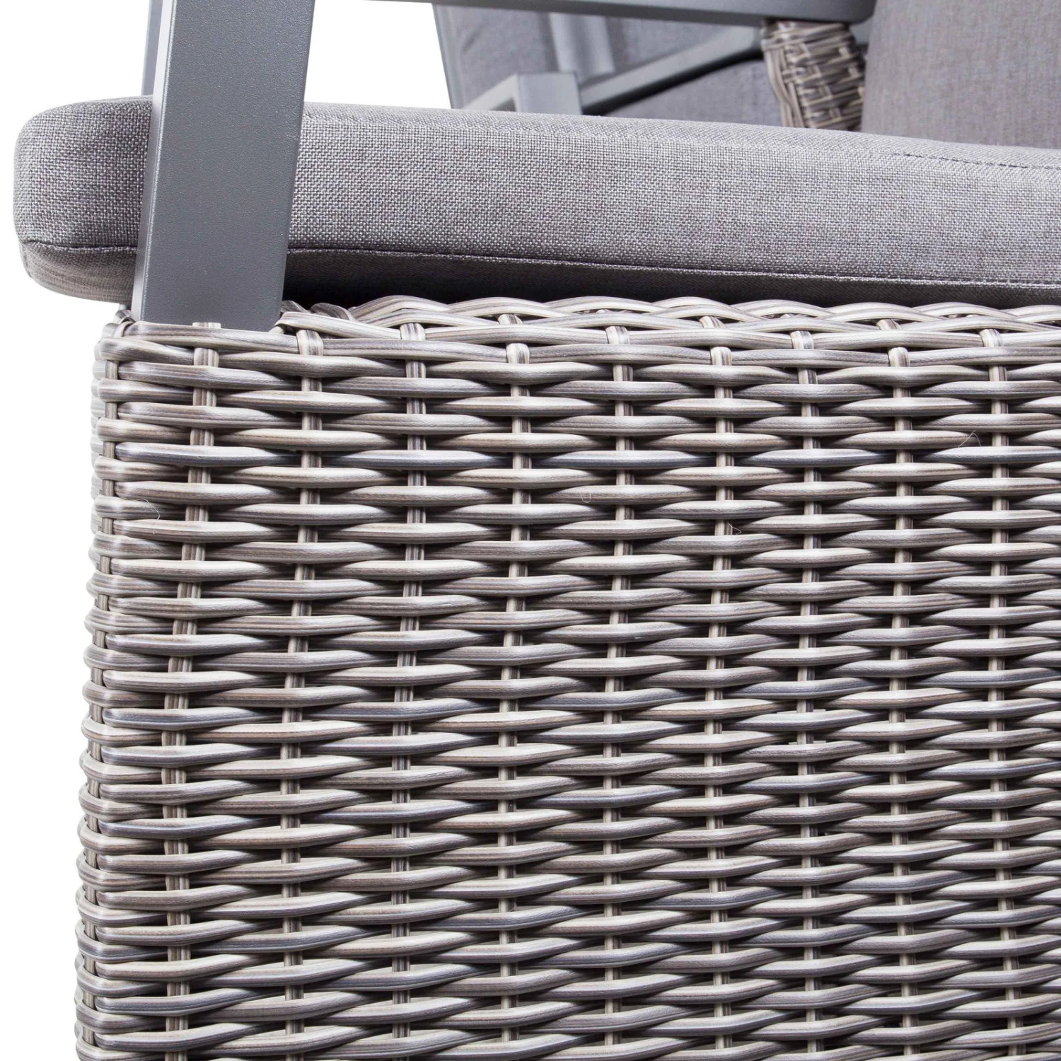 Der Geflechtsessel ‚Bremen‘ fällt durch eine gelungene Mischung von modernem, charakterstarkem Design und rustikalen, nostalgischen Elementen auf. Das stabile Gestell aus leichtem Aluminium umspannt ein hochwertiges Kunststoffrattan. Die eckigen Armlehnen bleiben frei von dem Geflecht und lassen eine trendige, klare Optik entstehen. Sie erhalten den Geflechtsessel ‚Bremen‘ mit einer passenden, weich gepolsterten Auflage für mehr Sitzkomfort. Ihr Vorteil: Die Rückenlehne des Sessels ist stufenlos verstellbar, sodass Sie sich gerne entspannt zurücklehnen und Ihre Gedanken schweifen lassen können. Aber auch als stilvolles Element einer Essgruppe ist der Sessel eine treffende Wahl. Alle Materialien eignen sich zum Einsatz im Outdoor-Bereich. Es spricht jedoch nichts dagegen, den Geflechtsessel auch in Ihrer Küche oder im Esszimmer in Szene zu setzen.