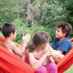 Die Kingsize-Hängematte Flora in chilirot wartet mit einem besonderen Liegekomfort für die ganze Familie auf. Freuen Sie sich auf eine extra breite Liegefläche und eine maximale Belastbarkeit von 200 kg.