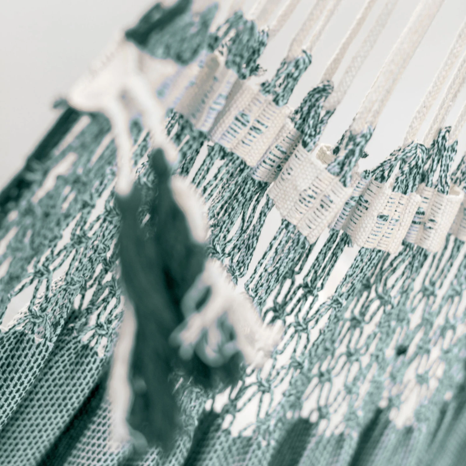 Ihre Kinder werden die blau-beige Kingsize Hängematte ‚Bossanova‘ lieben, da sie für die ganze Familie geeignet ist. Relaxen Sie gemeinsam! Die Hängematte hat eine Größe von 180 x 400 x 180 cm und eine maximale Belastbarkeit von 200 kg. Ihre hohe Stabilität bekommt sie durch Bio-Baumwolle und reißfeste Webkanten.