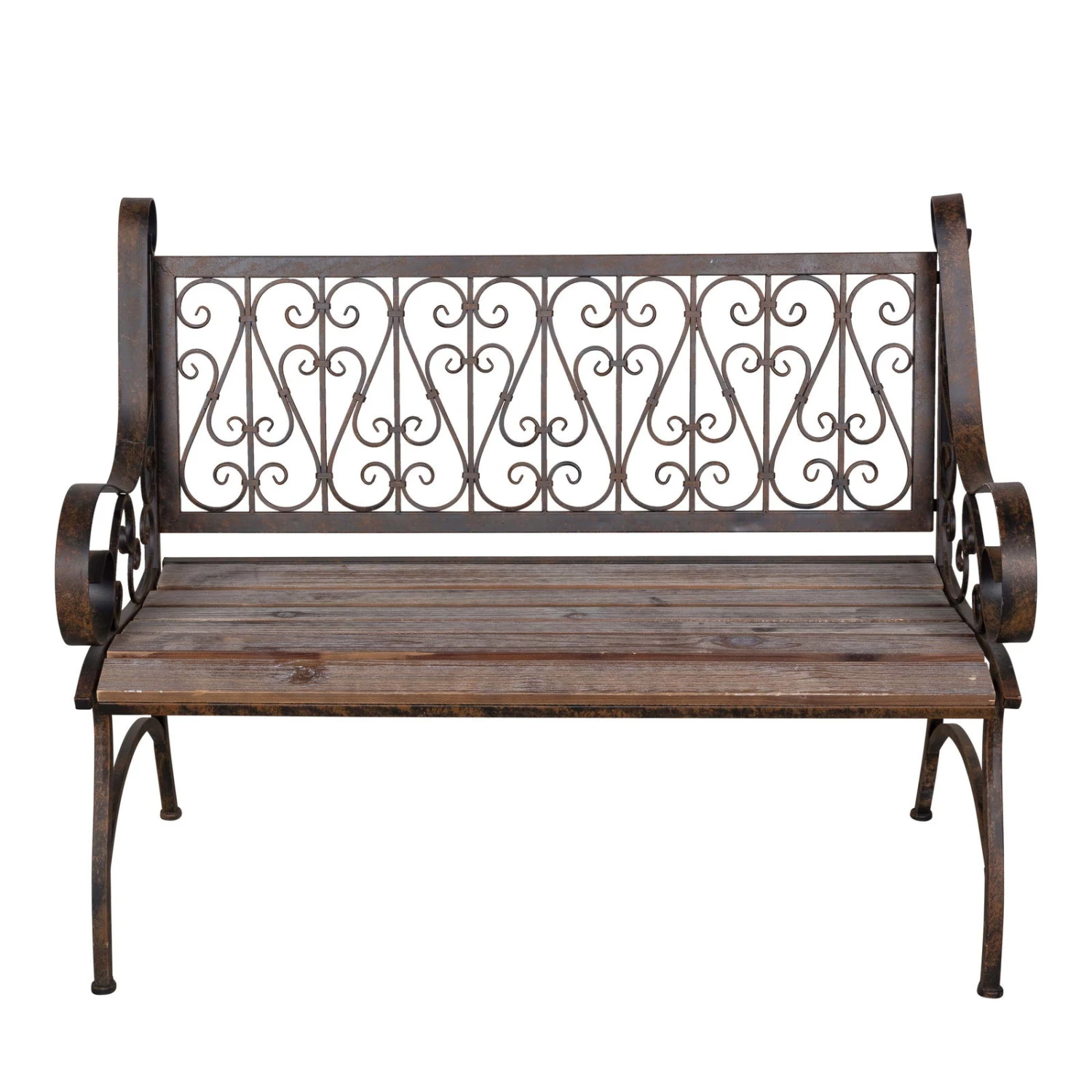 Metall-Gartenbank Bordeaux, Braun Mit Holzsitz, Ca. 91 X 59,2 X 115 Cm