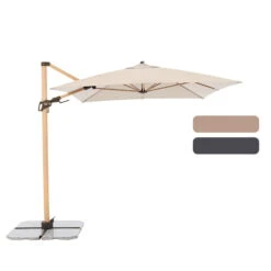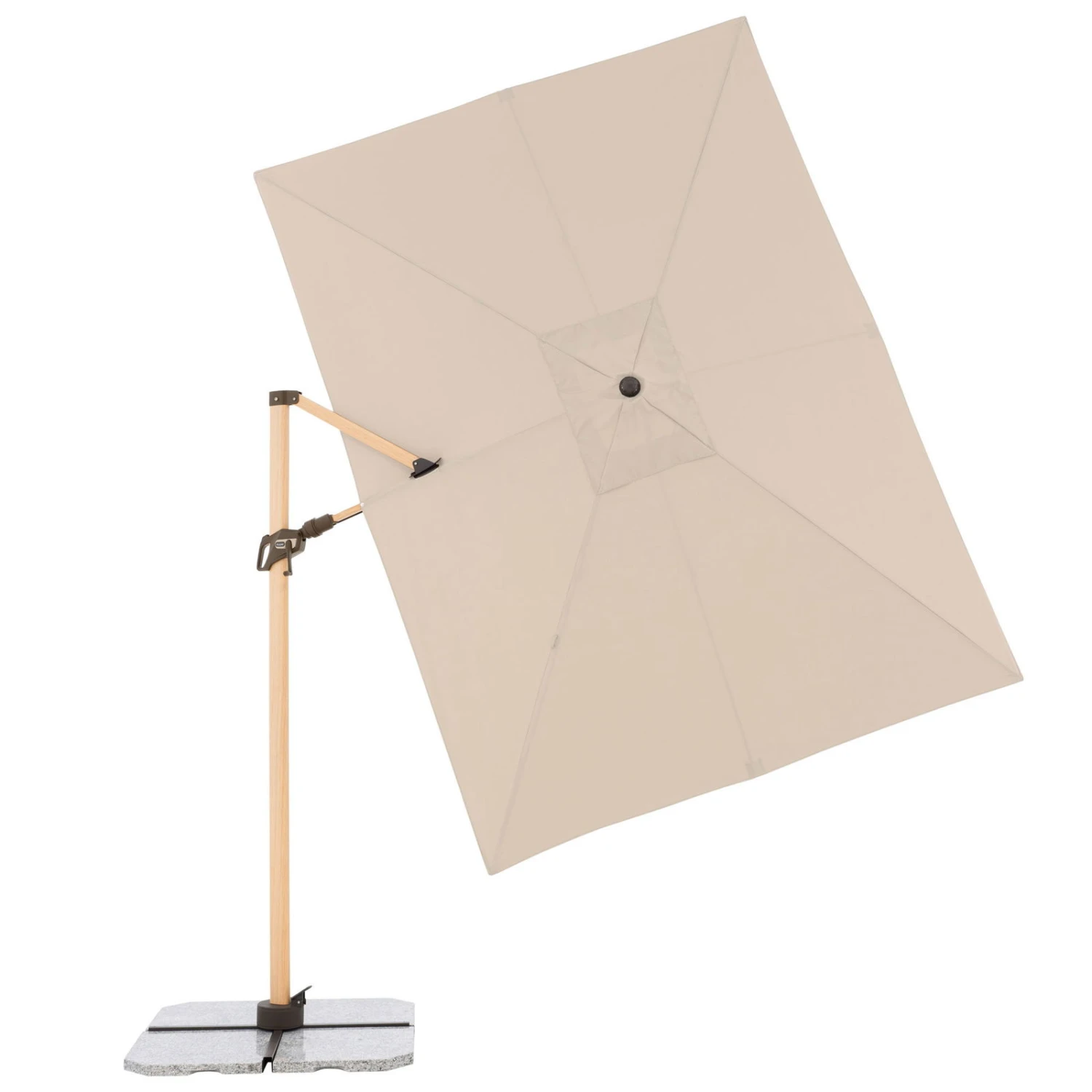 Mit dem Pendelschirm ‚Alu-Wood Ultra AX‘ in ansprechender Holzoptik lassen Sie inmitten der glĂŒhenden Hitze eine wohltuende Schattenoase entstehen. Ein paar Handgriffe genĂŒgen, um diesen Ampelschirm zu kippen und zu neigen. FĂŒr ein Plus an FlexibilitĂ€t ist das Modell mit einem FuĂtaster um 360 Grad drehbar.