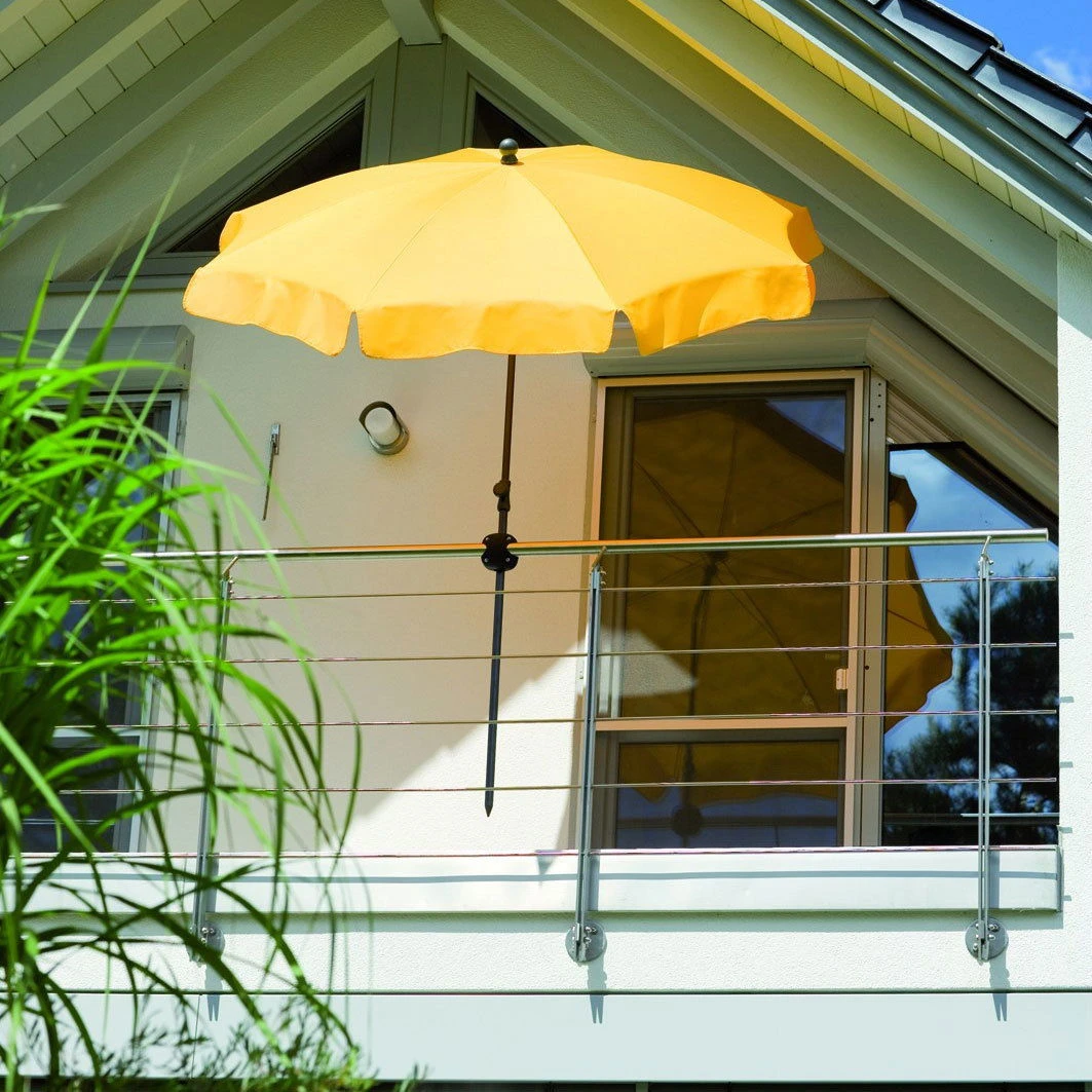 Der Schirmhalter Foxi von Schneider ist eine innovative und unkomplizierte Lösung zum Anbringen von Gartenschirmen am BalkongelĂ€nder. Die beiden Halbschalen lassen sich mithilfe von vier mitgelieferten Schrauben fest verschlieĂen und fixieren sicher den Sonnenschirm. Geeignet fĂŒr Stockdurchmesser 25, 30 und 32 Millimeter.