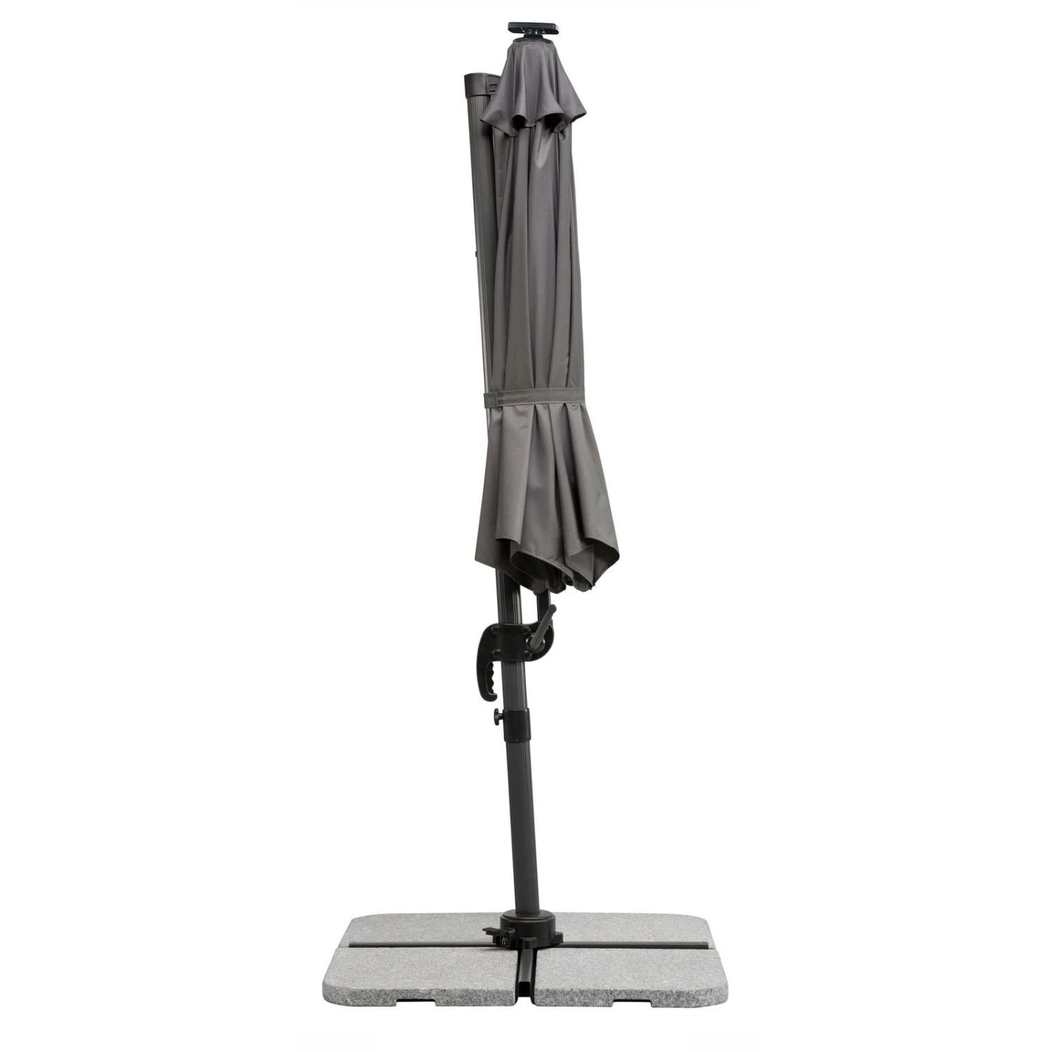 Der runde Sonnenschirm Rhodos Blacklight von Schneider in der eleganten Farbe Anthrazit spendet Schatten an einem sonnigen Sommertag und setzt dank der integrierten, solarbetriebenen LEDs dekorative Lichtakzente im Dunkeln. Dabei punktet der Pendelschirm Rhodos Blacklight mit einer einfachen Handhabung und mit langlebiger, pflegeleichter Bespannung.