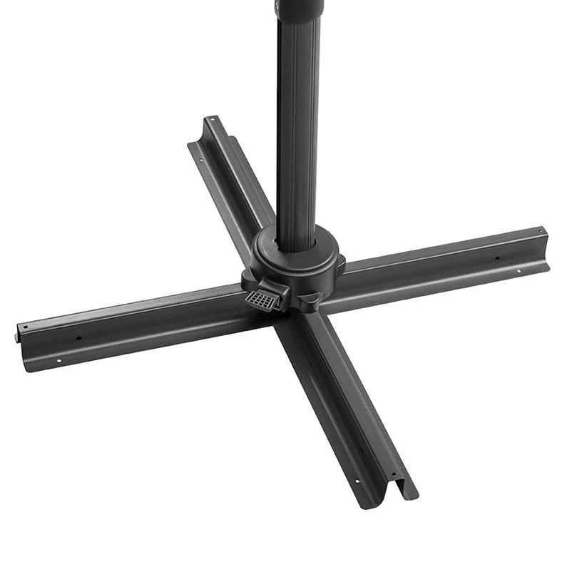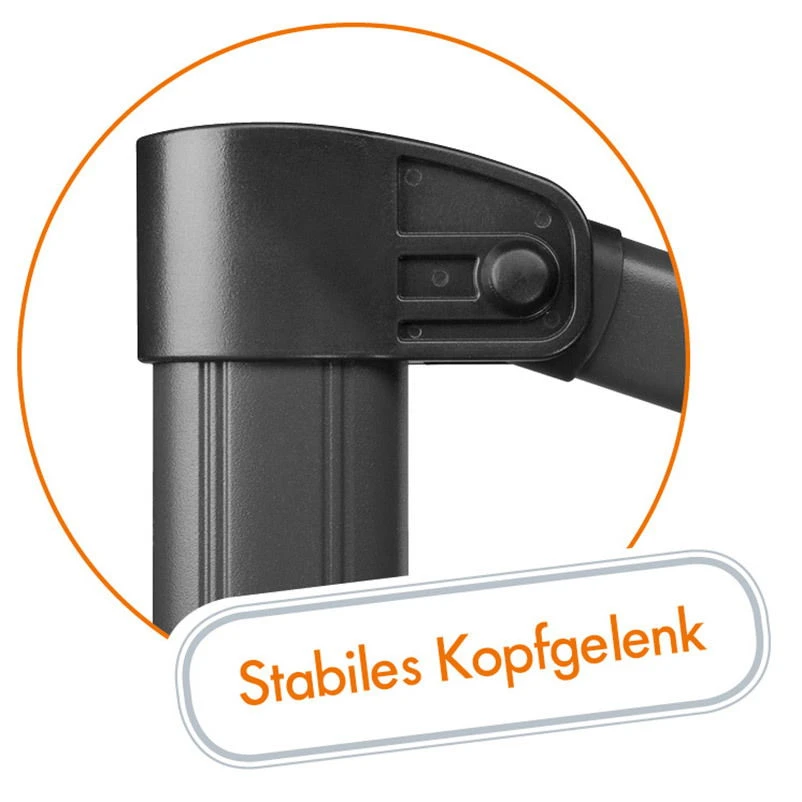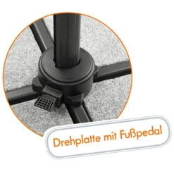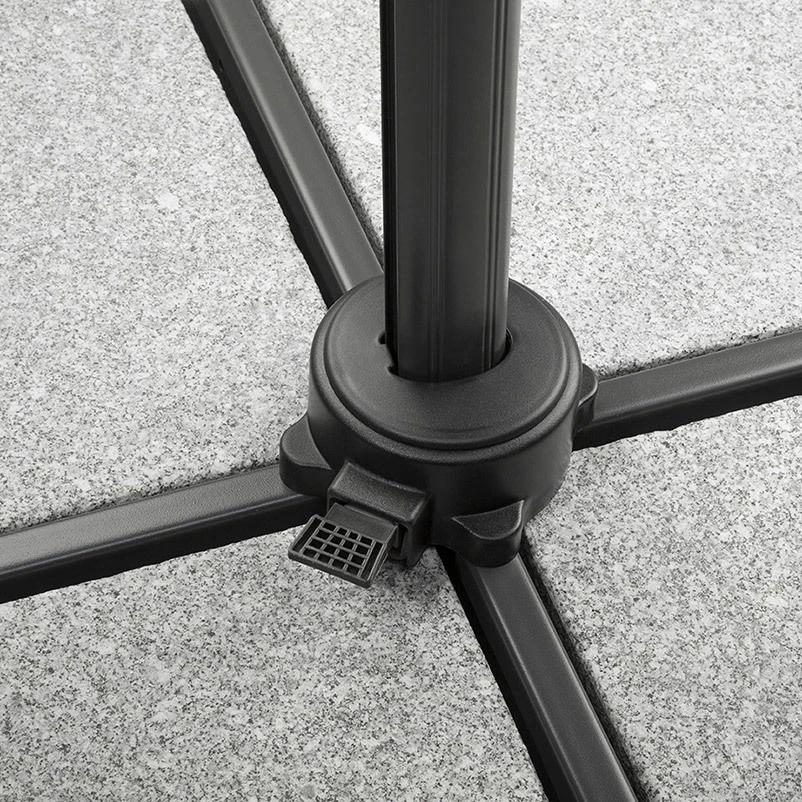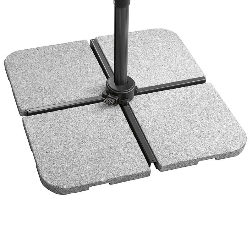 Der zweiteilige Mast aus Aluminium mit den MaĂen von ca. 67 x 50 mm ist ĂŒberdurchschnittlich stabil und trotzt den verschiedensten WitterungseinflĂŒssen. Die 8 eingebauten Dachstreben aus Stahl mit den MaĂen von ca. 22 x 13 mm sorgen zusĂ€tzlich fĂŒr weitere Standfestigkeit. ZusĂ€tzlich zu diesem Ampelschirm erhalten Sie einen PlattenstĂ€nder fĂŒr Wegeplatten. Damit der Schirm sicher steht, beschweren Sie den PlattenstĂ€nder mit Wegeplatten und auch hier macht sich das geringere Gesamtgewicht bemerkbar, denn zum Beschweren reicht nun ein Mindestgewicht von ca. 100 kg (Bitte beachten Sie: die Wegeplatten sind nicht im Lieferumfang enthalten!).