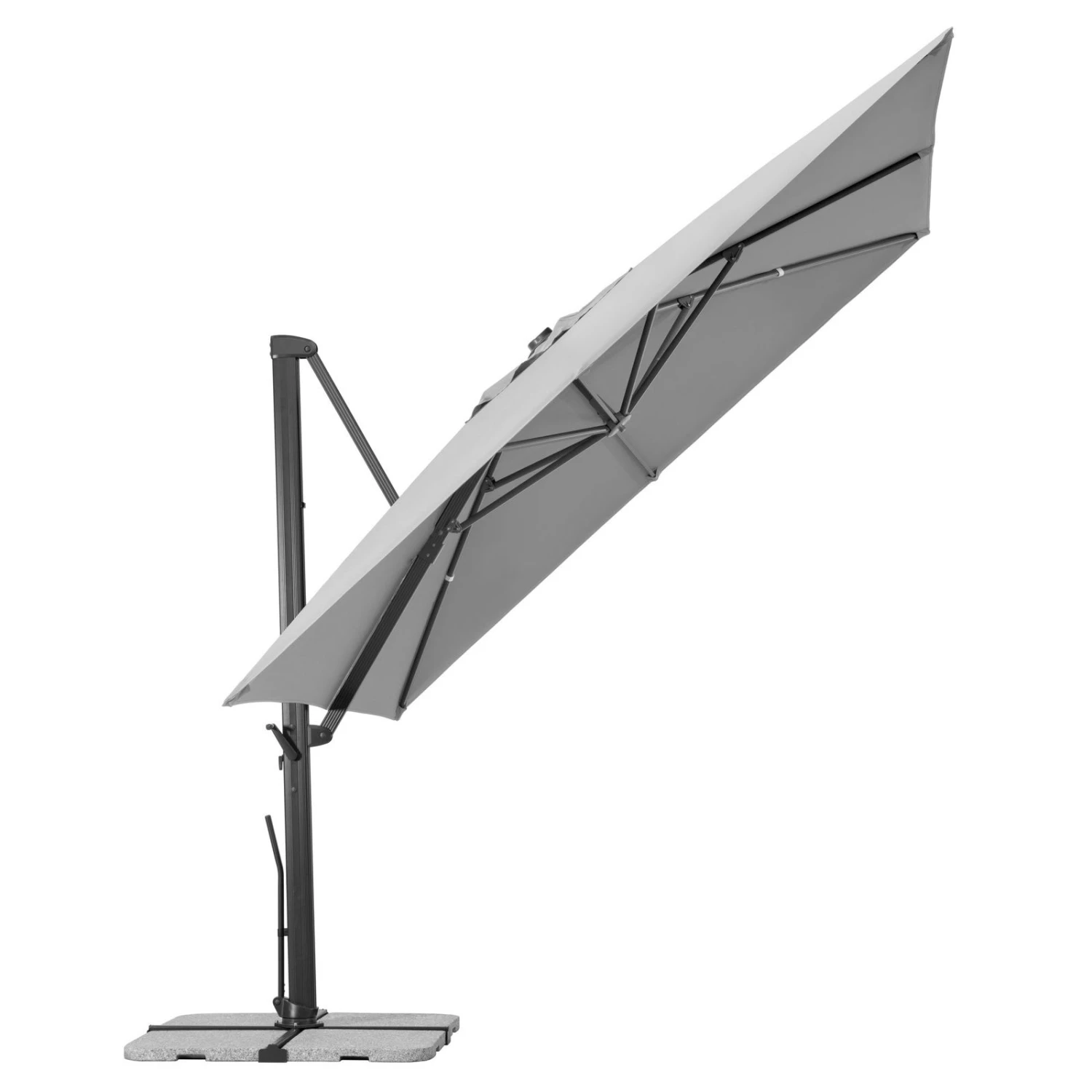Dieser Pendelschirm ĂŒberzeugt durch sein intelligentes Design und ist mit wenigen Handgriffen an den aktuellen Sonnenstand angepasst. Sie erhalten den Ampelschirm ‚Rhodos Smart‘ von Schneider Schirme inklusive eines praktischen StĂ€nders, zusĂ€tzlich benötigen Sie Wegeplatten 50 x 50 cm. Der wasserabweisende, lichtechte Bezug lĂ€sst sich zur Reinigung problemlos abnehmen.