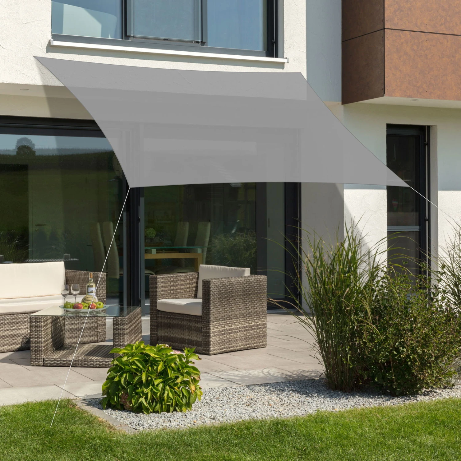 Das Sonnensegel ‚Teneriffa‘ von Schneider Schirme lĂ€sst auf Ihrer Terrasse oder Ihrem Balkon eine wohltuende schattige Oase entstehen. Das Sonnensegel besteht aus wetterfestem, reiĂfestem HDPE-Gewebe und ist mit Befestigungsringen aus Edelstahl sowie einem verstĂ€rkten Randsaum ausgestattet. AuĂerdem erhalten Sie im Lieferumfang ein 10 Meter langes Befestigungsseil.