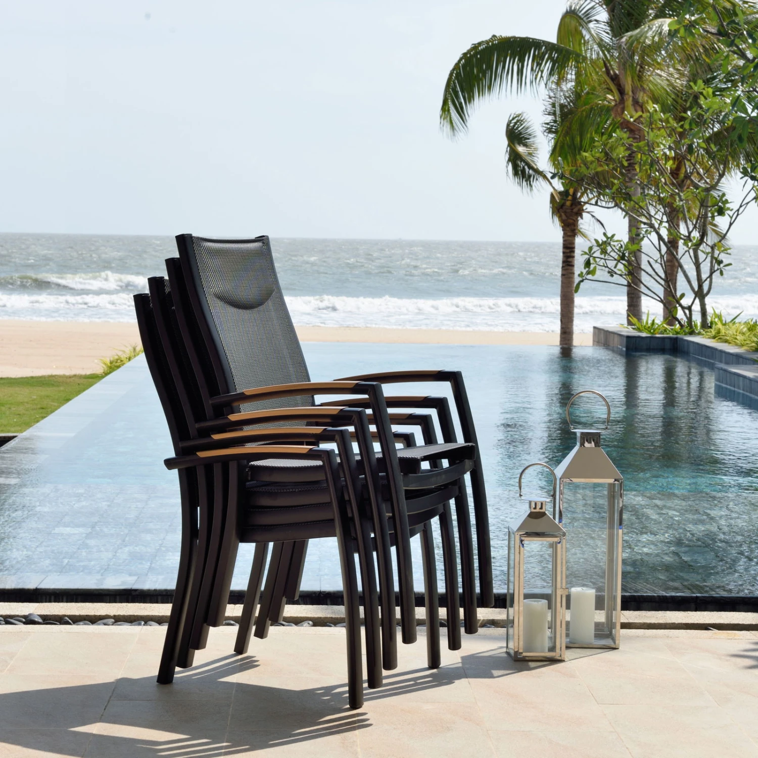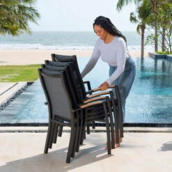 GenieĂen Sie mit dem Stapelsessel ‚Panama‘ maximalen Komfort im AuĂenbereich und werten Sie Ihre Dining-Landschaft auf eine stilvolle Art auf. Dieser schwarze Stapelsessel ist dank seines Alu-Gestells ein mobiles Leichtgewicht und ĂŒberzeugt zugleich mit hoher StabilitĂ€t in Kombination mit maximalem Sitzkomfort. Nach dem Saisonende stapeln Sie den Sessel ‚Panama‘ auf Ihrer Terrasse oder im Schuppen platzsparend auf.